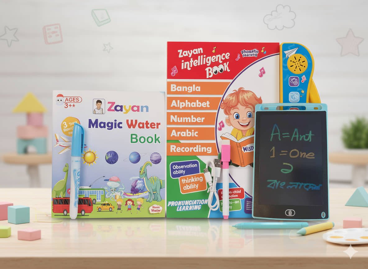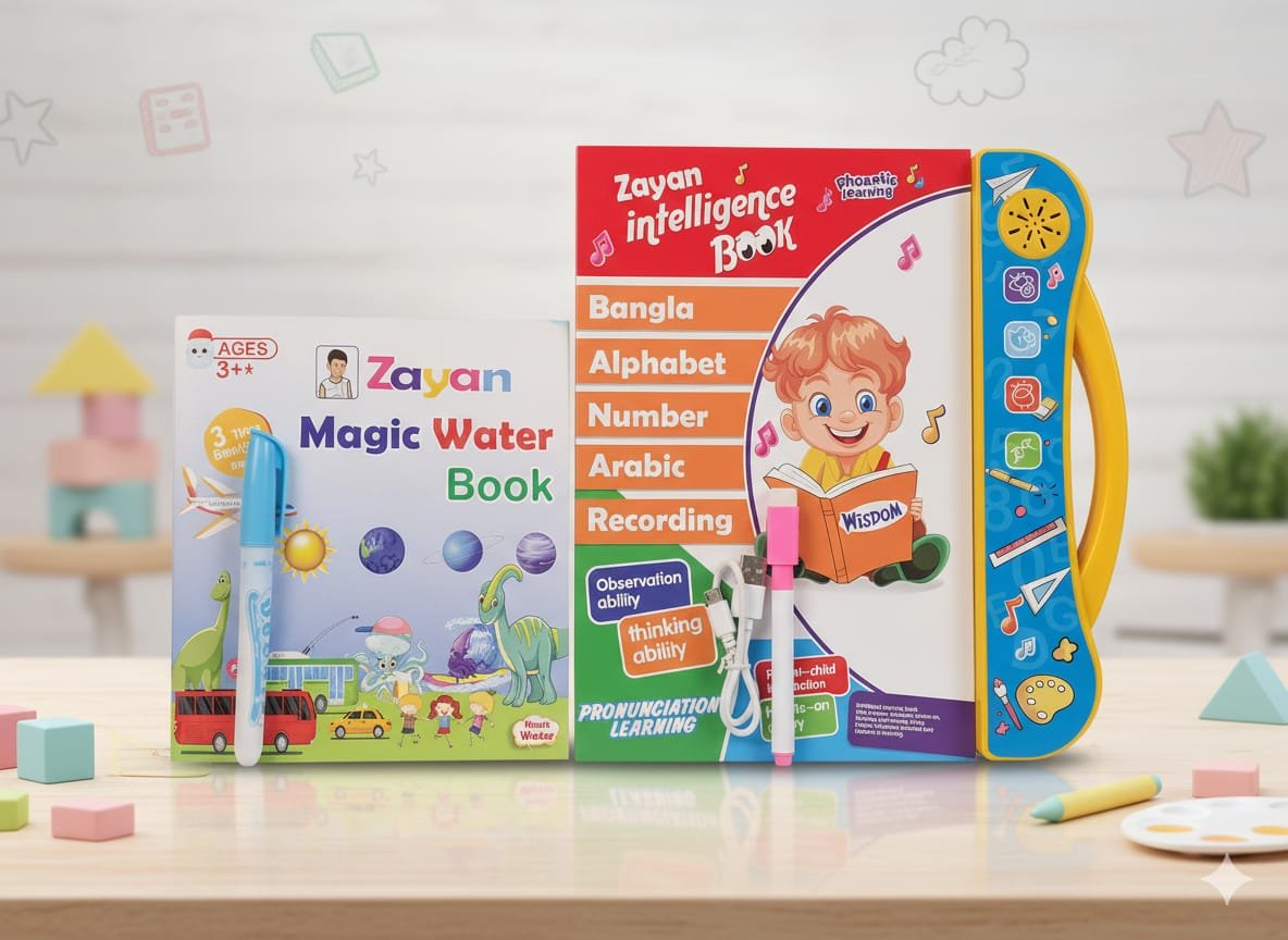 দ্বিগুণ কন্টেন্ট • দ্বিগুণ শেখা • দ্বিগুণ মজা 🤩📘⸻ ✨ নতুন আপডেটে যা পাচ্ছেন 🔢 ক্যালকুলেটর ফিচার 🧍‍♂ মানবদেহ পরিচিতি 📅 সপ্তাহ – মাস – ঋতু 👁 পাঁচ ইন্দ্রিয় 🍎🌼🥦 ফল – ফুল – সবজি 🐅🕊🚗 প্রাণী – পাখি – যানবাহন 🎶 Rhymes 🔢 নামতা 📖 কুরআনের ১৫টি সূরা 🎵 ইসলামিক গজল ➕ আরও অনেক নতুন কনটেন্ট! ⸻ 🟠 সুপার ম্যাজিক ফিচার – Magic Water Book 🖊 স্পেশাল ওয়াটার পেন দিয়ে আঁকলে ছবি নিজে নিজে ভেসে উঠবে 👶 শিশুরা খেলতে খেলতেই শিখবে 📵 মোবাইল থেকে দূরে রাখবে ⸻ 🔵 Recording Button ফিচার🎙 বাচ্চা যা বলবে—বই তা রেকর্ড করে আবার শোনাবে 🧠 শেখা হবে আরও ইন্টার‌্যাকটিভ ও মজাদার ⸻ 🔴 এখন পুরোপুরি রিচার্জেবল!⚡ যেকোনো চার্জারেই চার্জ করা যাবে 🔌 ফ্রি USB to Type-C Cable 🛑 আর ব্যাটারি কেনার ঝামেলা নেই ⸻ 🟠 শিশুরা যা যা শিখতে পারবে🇧🇩 বাংলা স্বরবর্ণ ও ব্যঞ্জনবর্ণ 🇬🇧 ইংরেজি Alphabet 🕋 আরবি বর্ণমালা 🔢 বাংলা ও ইংরেজি সংখ্যা 📚 বাংলা-ইংরেজি-আরবি ছড়া 🎶 ইসলামিক গান ও গজল 📖 কুরআনের ১৫ সূরা ✍ ক্যালকুলেটর ফিচার 👁 পাঁচ ইন্দ্রিয় 🧍 মানবদেহ 📅 সপ্তাহ–মাস–ঋতু 🍎🌿 ফল–ফুল–সবজি 🐅🕊🚗 প্রাণী–পাখি–যানবাহন — 🎀 ZAYAN Intelligence Book – এক বইতেই শেখা + খেলা + ক্যালকুলেশন! 🎁 আপনার শিশুর জন্য পারফেক্ট গিফট—আজই সংগ্রহ করুন! 📩 অর্ডার করতে: 💬 ইনবক্স করুন 📞 কল করুন: 01315-257277